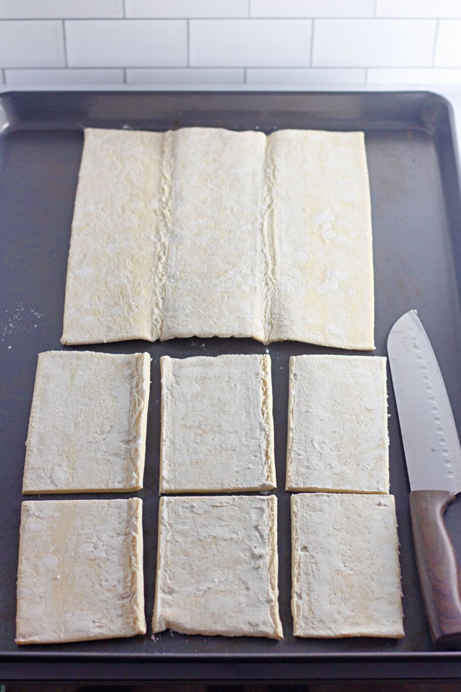 - Make sure the puff pastry sheets are fully thawed but still cold for best rise.