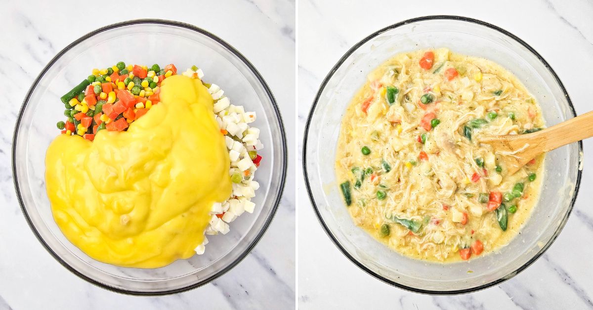 - Make sure the frozen vegetables and potatoes are fully thawed before mixing to avoid excess water in the filling.