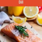 - Remove the salmon from the heat and place thin lemon slices and fresh sprigs of dill on top.