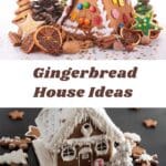 Right off the bat, something different for gingerbread house decorating ideas – a double gingerbread cookie house cake! The best part? This house is pink! It includes spicy gingerbread cake, cream cheese frosting, gingerbread cookies, royal icing and edible decorations. Recipes for all parts included. Make walls and frame a few days before decorating to allow icing to set. Step by step instructions included!