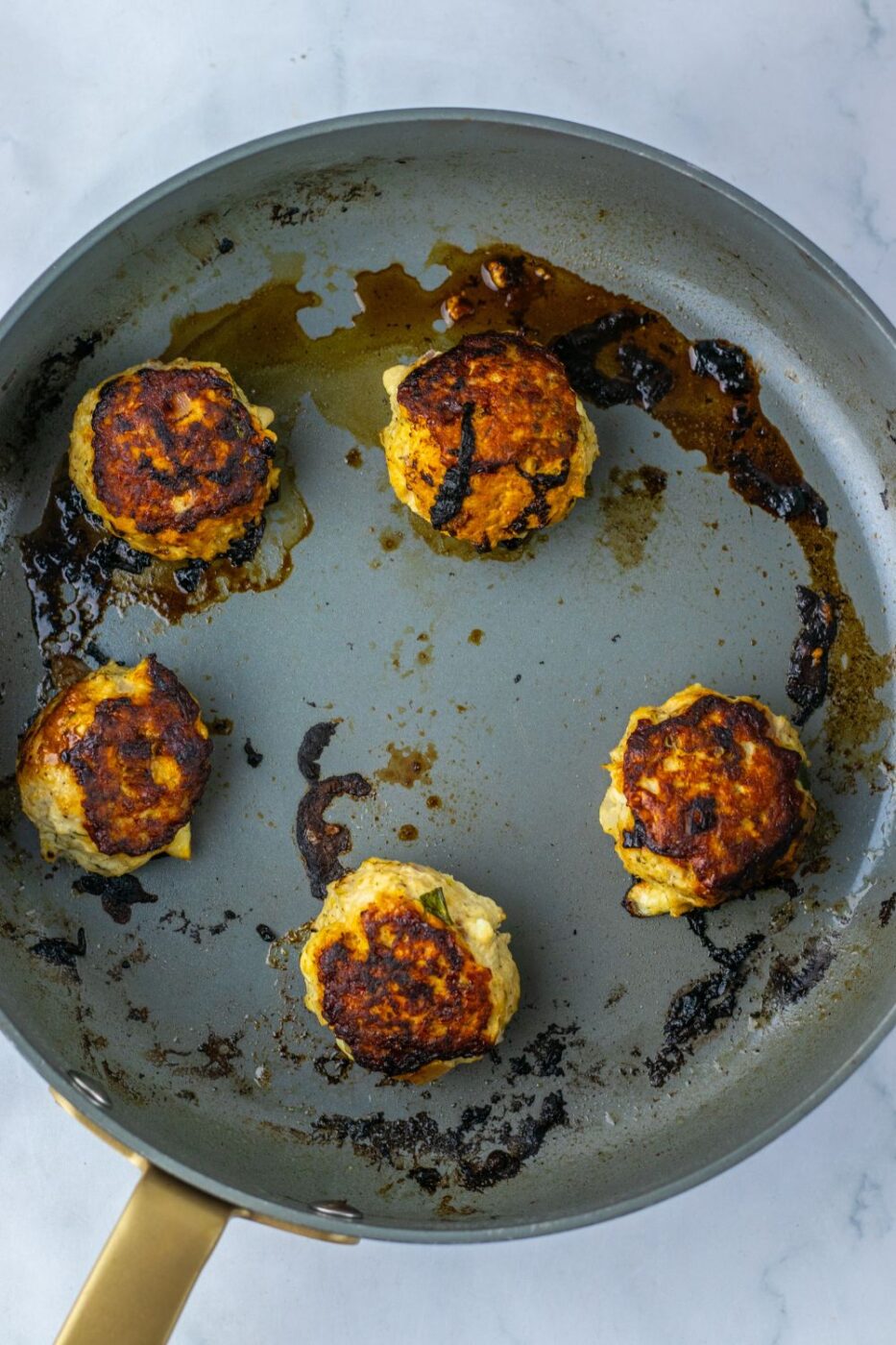 - If your skillet is small, cook the meatballs in batches for even browning. If the pan gets too crowded, they will steam instead of sear, which loses a bit of flavor.