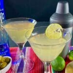 A Mexican Martini includes Tequila, Lime Juice, Olive Juice, and an orange liqueur, like Grand Marnier or Triple Sec. Let’s get into it.