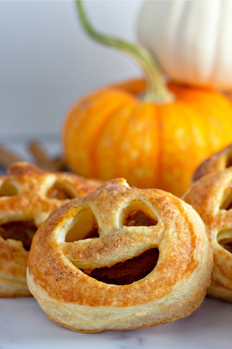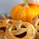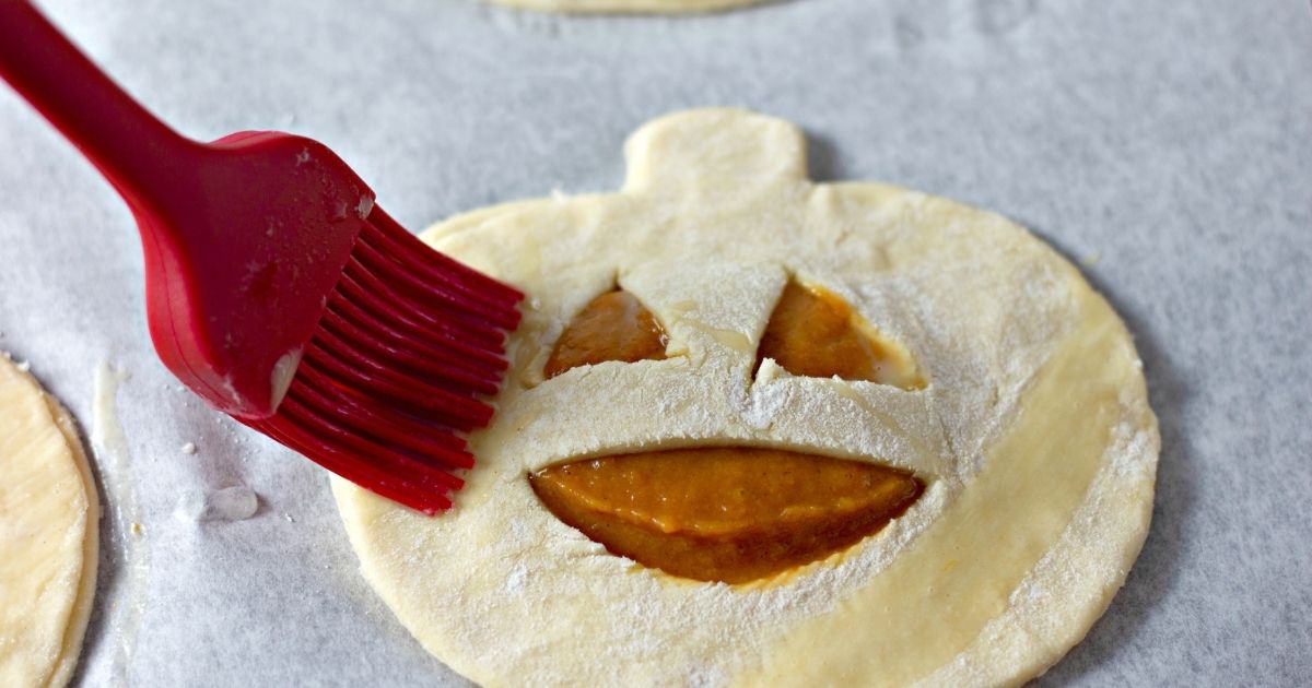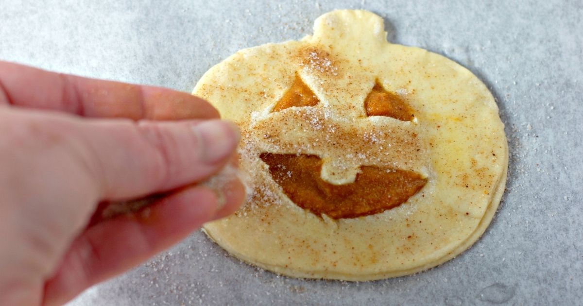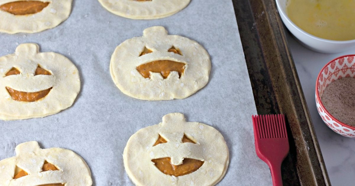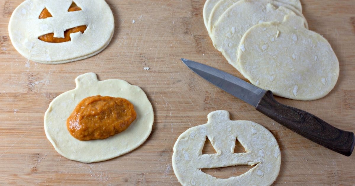 Step 6: Cut out jack-o-lantern faces on the remaining pastry pieces if desired, then place one on top of each filled pastry. Press edges gently to seal.