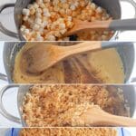 Step 7: Quickly mix to evenly coat the cereal before it starts to set, then scoop into the prepared 11×7-inch pan. Use a buttered spatula to spread it out evenly.