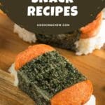 This snack recipe features teriyaki-flavored Spam, rice, and nori. The teriyaki sauce adds a sweet and savory flavor to the Spam, while the rice and nori provide a chewy and salty contrast.