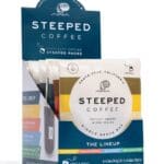 Steeped Coffee is known for its eco-friendly approach to coffee brewing. The company sells single-serve coffee Brew Bags that are “fully compostable” and made from plant-based renewable materials.