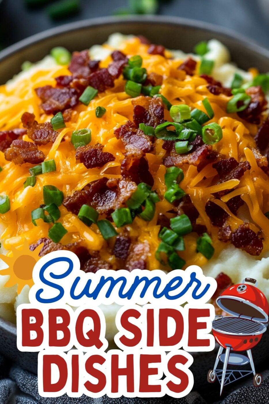 Imagine a plate full of your favorite BBQ party sides and you walk up to a crock of warm mash potatoes piled high with bacon, cheese and tangy with sour cream and green onions. You’ll be making a lot of friends with this one on the table.