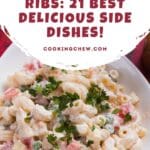 The ribs’ slightly sweet and smoky flavor complements the creamy pasta salad, and the dish can be served hot or cold.