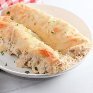 These white chicken enchiladas deliver everything you want from a weeknight comfort dish — creamy sauce, tender chicken, and golden cheese that melts into the tortillas. The green chile sour cream sauce adds just enough tang and warmth to keep each bite balanced.